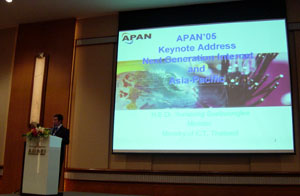 Minister of ICT, Thailand delivered his keynote address in 2005 APAN. |