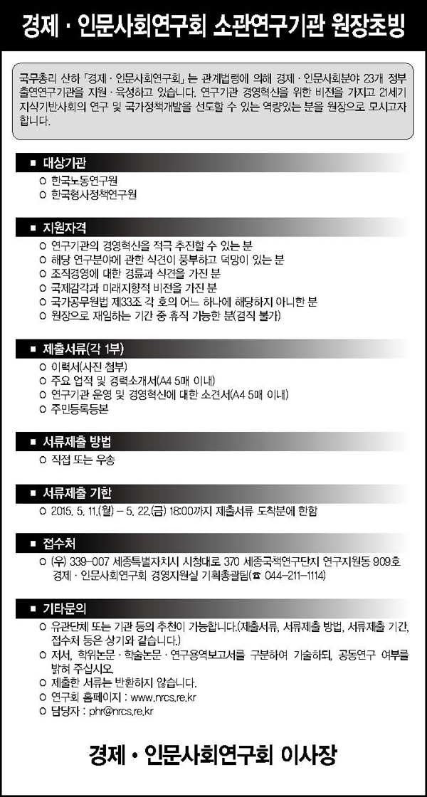 [경제·인문사회연구회] 소속기관 원장 초빙