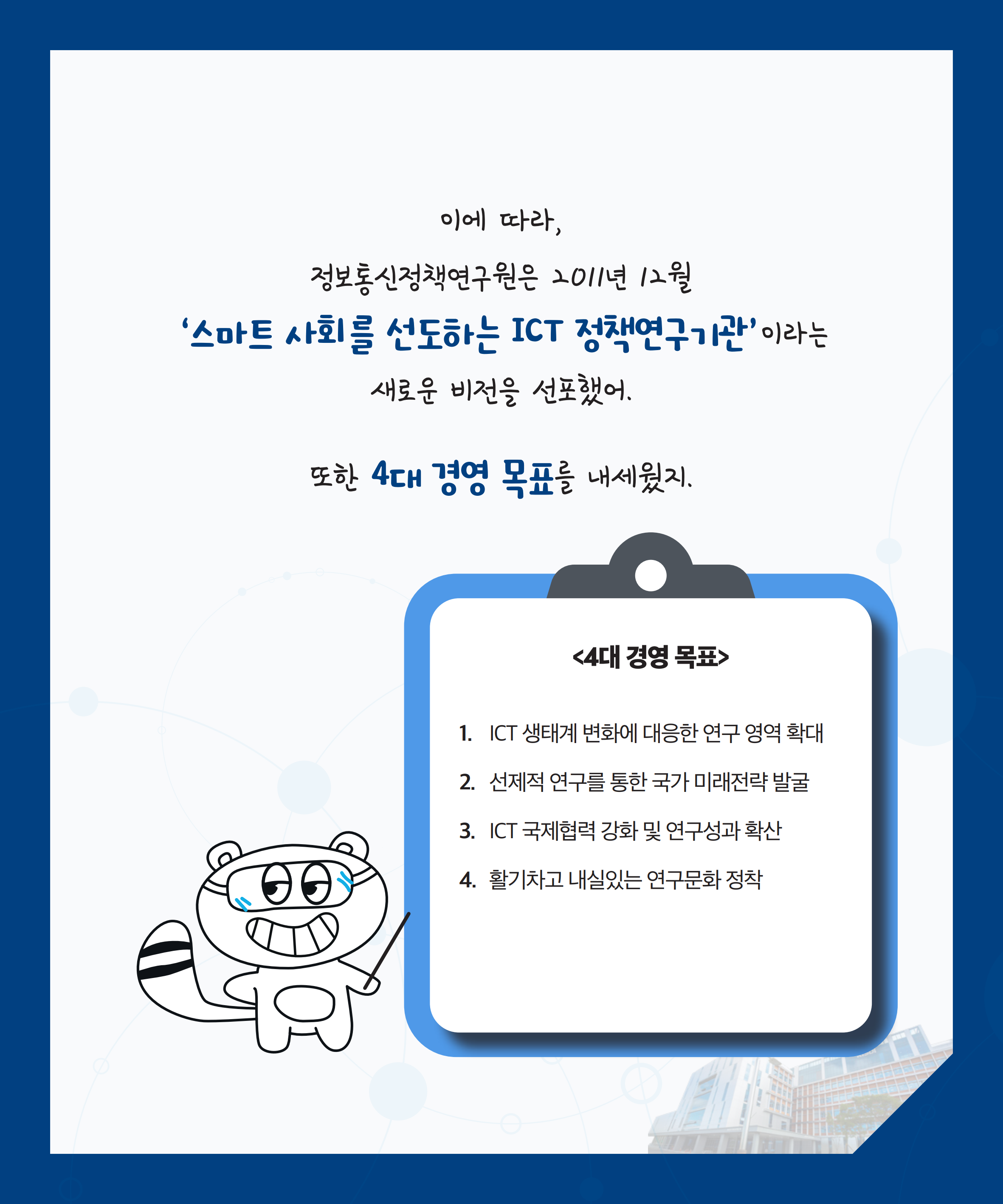 ‘스마트 사회를 선도하는 ICT 정책연구기관’이라는 새로운 비전을