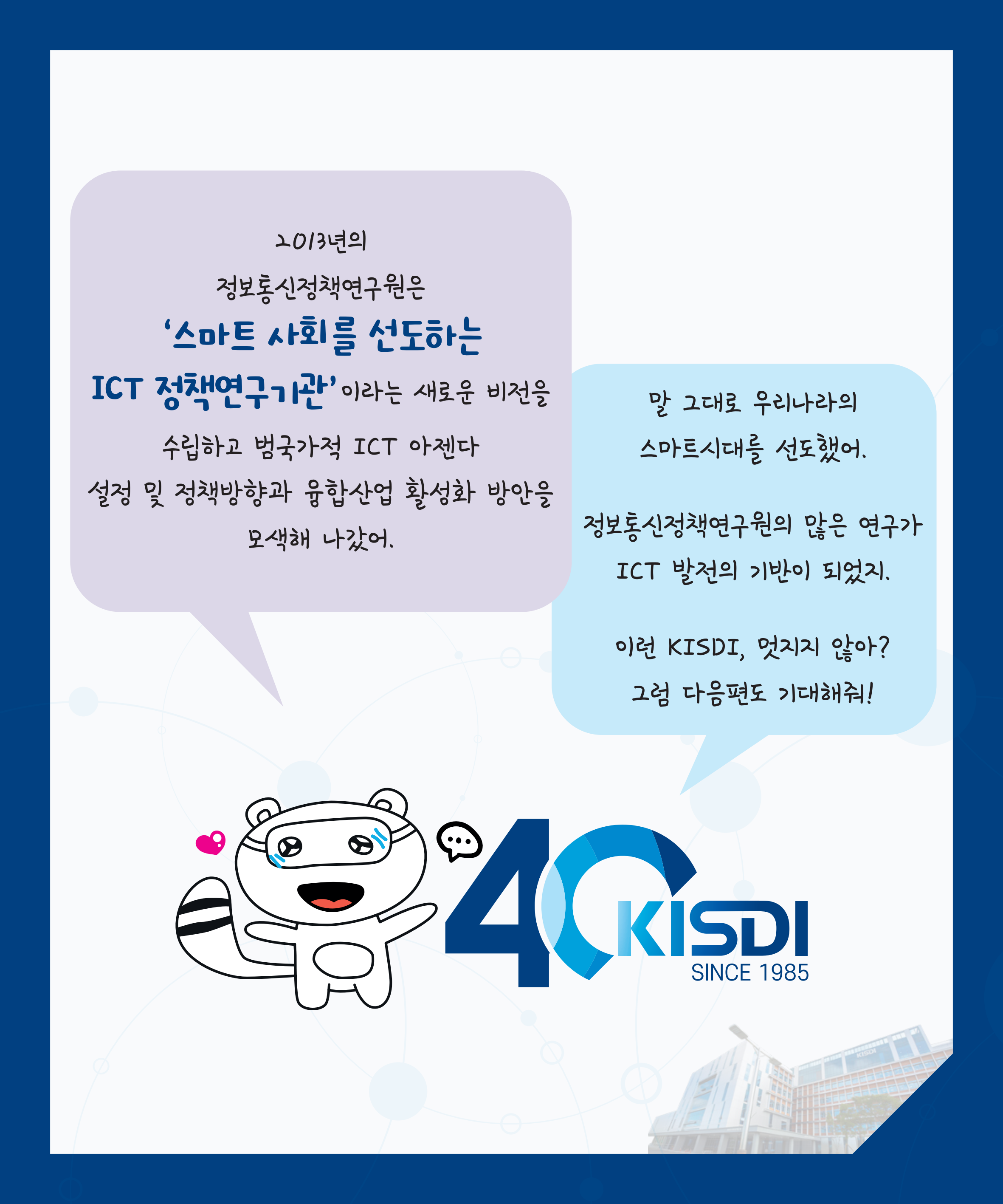 KISDI 40주년을 기념하여 매달 하나씩, KISDI의 ‘역사’를 담은 네트워크가 만들어질 예정입니다.