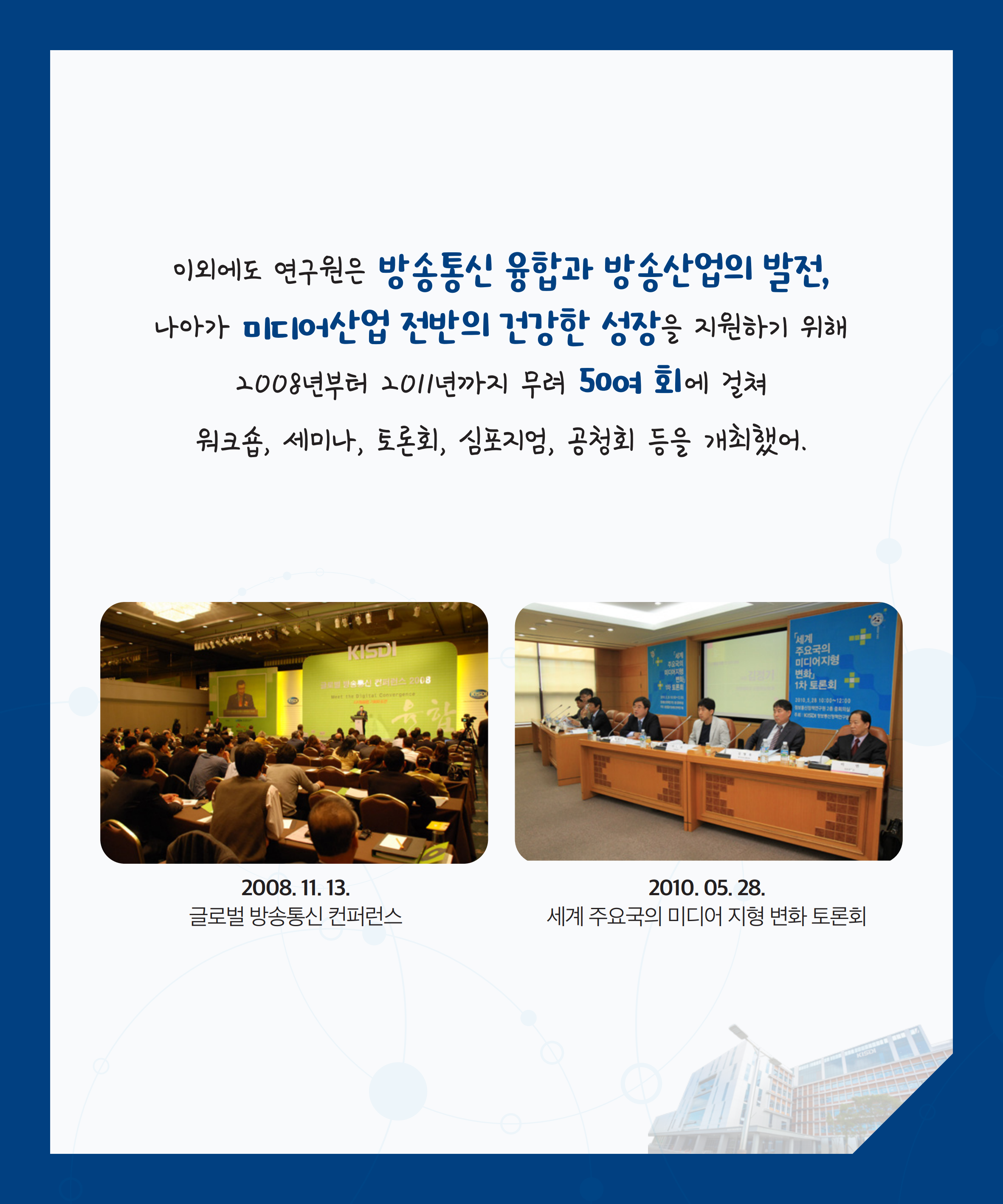 이외에도 연구원은 방송통신 융합과 방송산업의 발전,