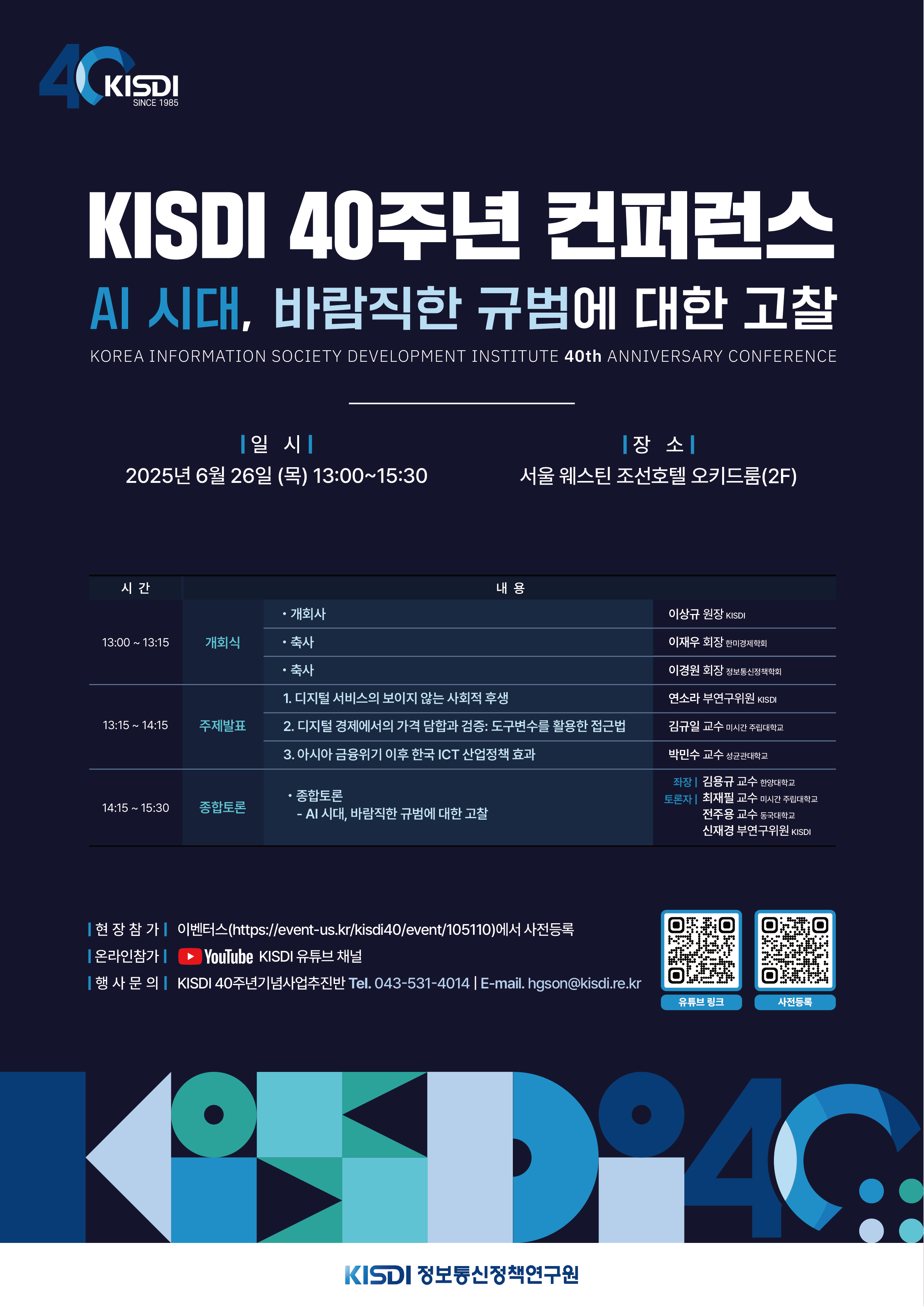 KISDI 40주년 컨퍼런스 ‘AI 시대, 바람직한 규범에 대한 고찰’