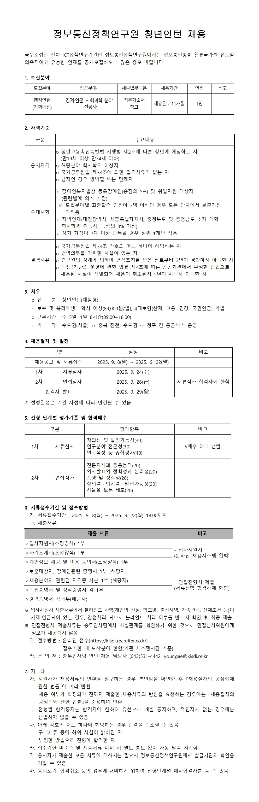 정보통신정책연구원 청년인턴(행정인턴) 채용
