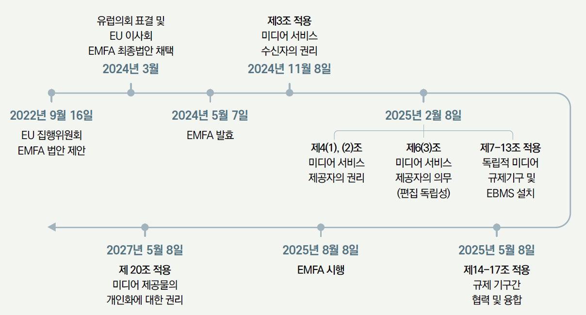 주: 유럽 미디어자유법 제29조(발효 및 시행)를 바탕으로 정리
