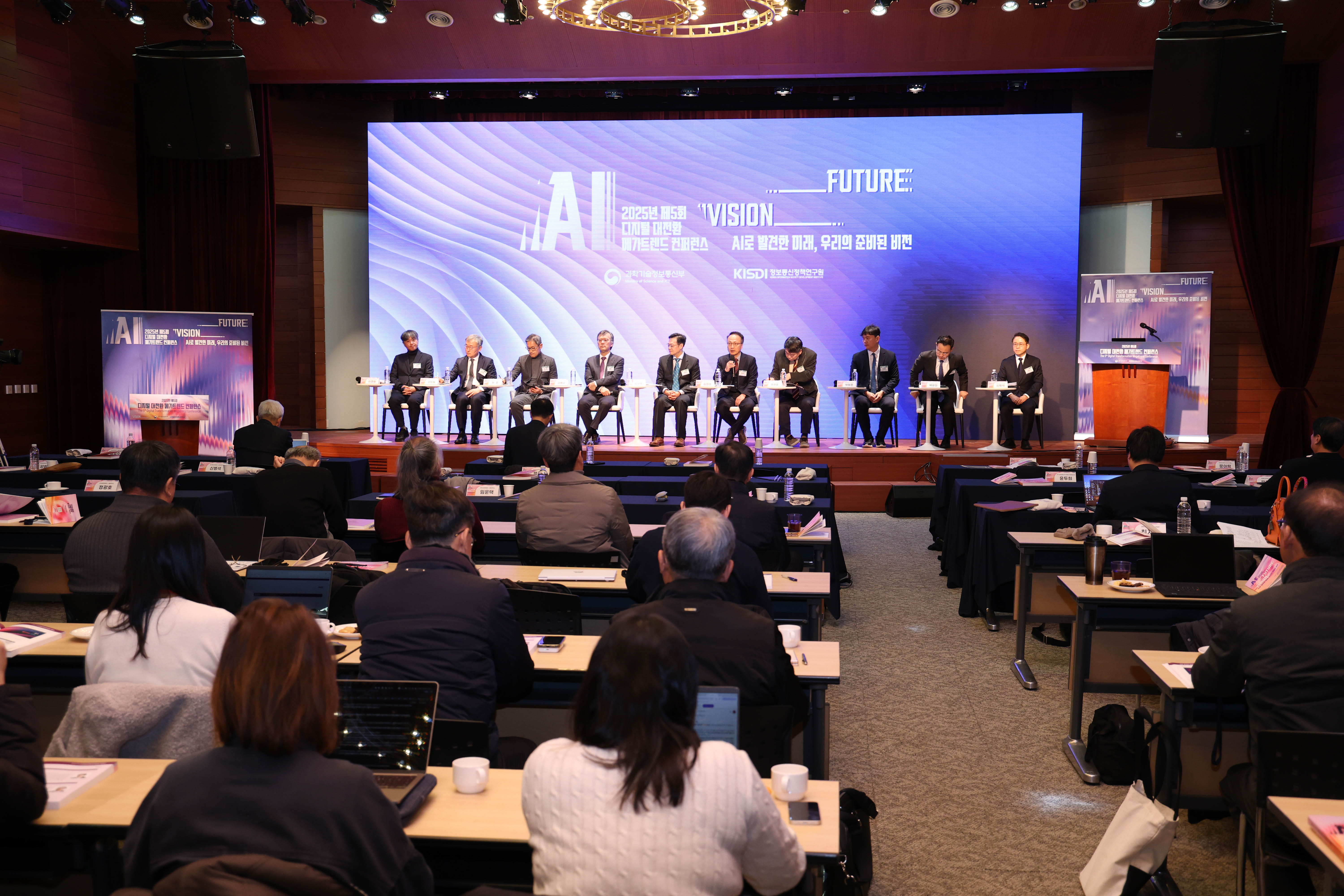 과학기술정보통신부(부총리겸 장관 배경훈)와 정보통신정책연구원(원장 이상규)은 12월 4일(목) 서울 포스트타워에서 국내 9대 학회(한국경영학회, 한국통신학회, 정보통신정책학회, 한국사회학회, 한국정치학회, 한국정책학회, 한국행정학회, 한국정보과학회, 대한전자공학회)와 1년간 공동으로 수행한 연구 성과를 발표하는 「제5회 디지털 대전환 메가트렌드 컨퍼런스」를 개최했다. 이번 컨퍼런스는 ‘AI로 발견한 미래, 우리의 준비된 비전’을 주제로, 급변하는 AI 전환기 대한민국이 나아가야 할 미래 지향점을 논의하기 위해 마련되었다.
