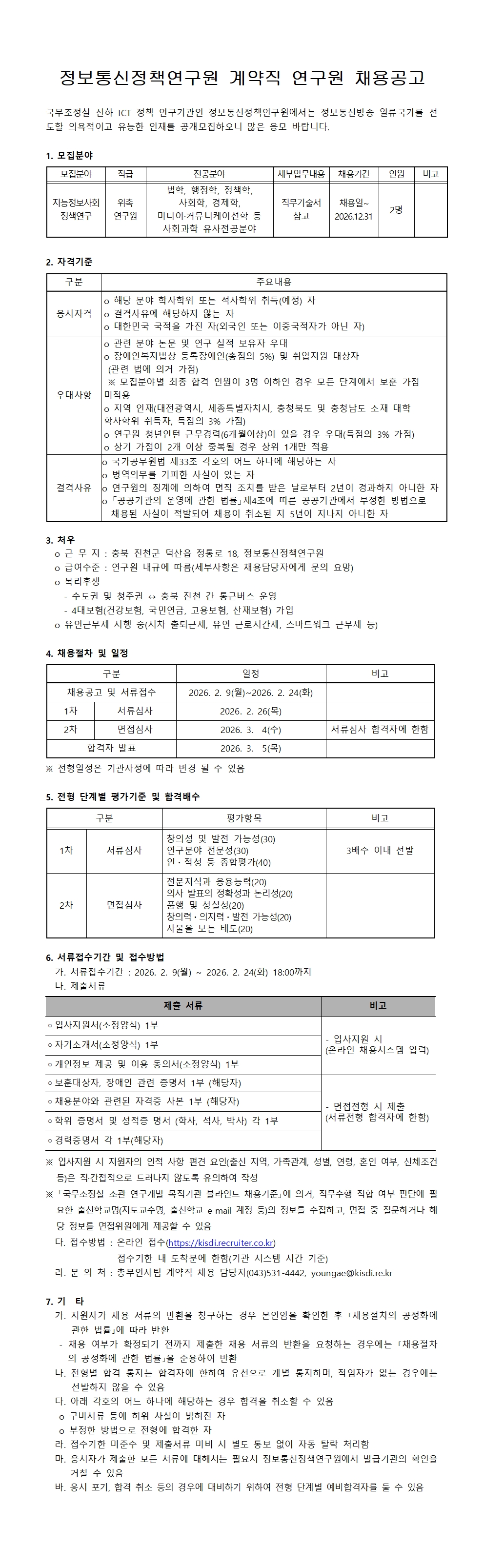 정보통신정책연구원 계약직 연구원(지능정보사회 정책연구) 채용공고