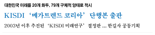정보통신정책연구원(KISDI, 원장 이주헌)은 미래한국의 변화를 구체적으로 조망한 ‘메가트렌드 코리아(부제: 21세기, 우리 앞의 20가지 메가트렌드와 79가지 미래 변화)’를 출판했다고 1일 밝혔다.
