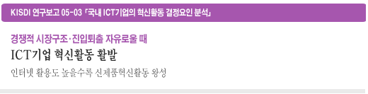 정보통신정책연구원(원장 이주헌) 신성장산업연구실 문성배 책임연구원과 이은민 주임연구원은 KISDI 연구보고 05-03 ‘국내 ICT기업의 혁신활동 결정요인 분석‘ 보고서에서 기업규모, 시장구조, 기업연령, 인터넷 활용도 등이 정보통신기업의 혁신활동에 어떠한 영향을 미치는지를 분석했다.
