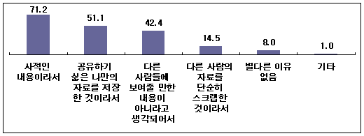 〔그림 〕블로그를 공개하지 않는 이유(일부 비공개 포함, 복수응답, %)