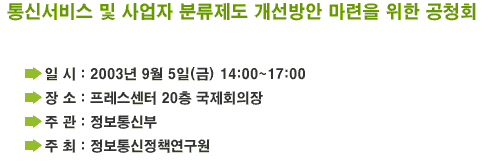 이러한 인식하에 정보통신정책연구원은 미래지향적인 통신서비스 및 사업자 분류체계 마련을 위한 의견수렴과 토론의 장을 마련하고자