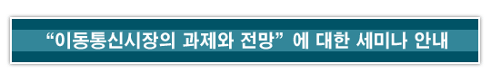 위한 방안을 모색하기 위해 토론의 장을 마련하고자 “이동통신 시장의 과제와 전망”이라는 주제로 학술 세미나를 개최합니다.
