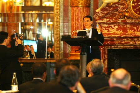 비즈니스 포럼에 참석한 진대제 장관이 7일(현지시각) 지상파DMB 시연 행사에서 세계표준이 될 DMB 기술을 소개하고