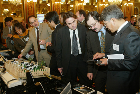 기술시연회에서 프랑스 현지 관계자 및 유럽인들이 지상파 DMB, RFID 등 한국의 첨단 IT기술에 대해 설명을