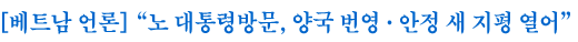 보도했으며 청년일보와 베트남 국영통신(VNA)이 발행하는 영자신문인 베트남 뉴스 등도 이번 방문으로 빠른 속도로 가까워지고 있는
