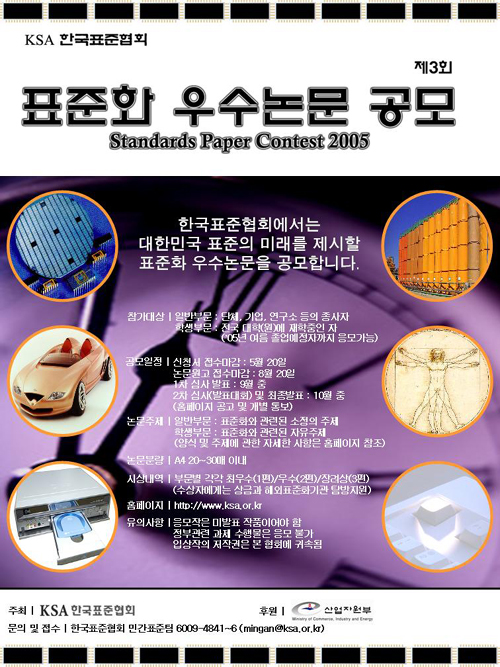 이에 따라, 한국표준협회는 정부의 표준화시책에 적극 호응코자 산업자원부의 후원으로 05년도 "제3회 표준화 우수논문 공모”를