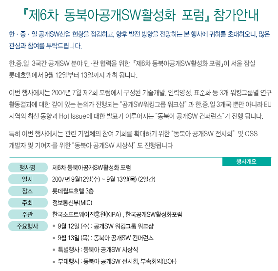 「 제6차 동북아공개SW활성화 포럼 」참가안내