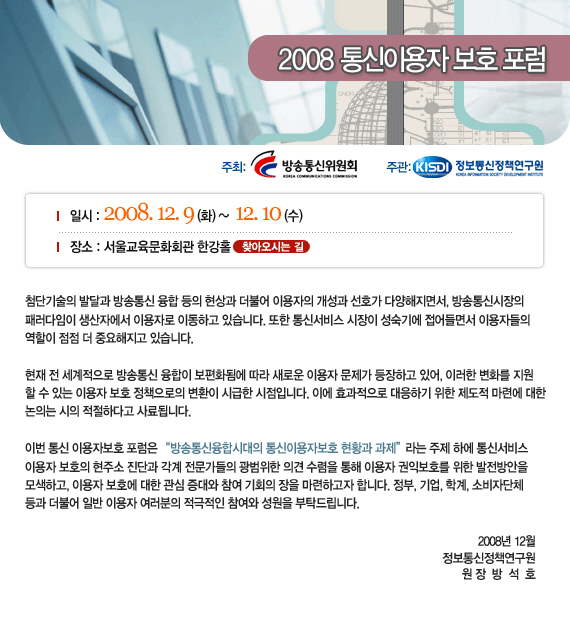 2008 통신이용자 보호 포럼 개최안내