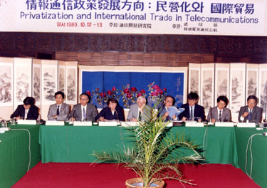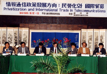 1989년 10월 12일 열린 '정보통신정책방향: 민영화와 국제무역' 국제학술대회에서는 전기통신서비스와 관련된 국제무역, 한국과 일본의 전기통신무역과 정책, 민영화, 각국의 전기통신정책, 전기통신부문의 자유화와 경쟁도입 등 분과별로 다양한 토론이 있었다.