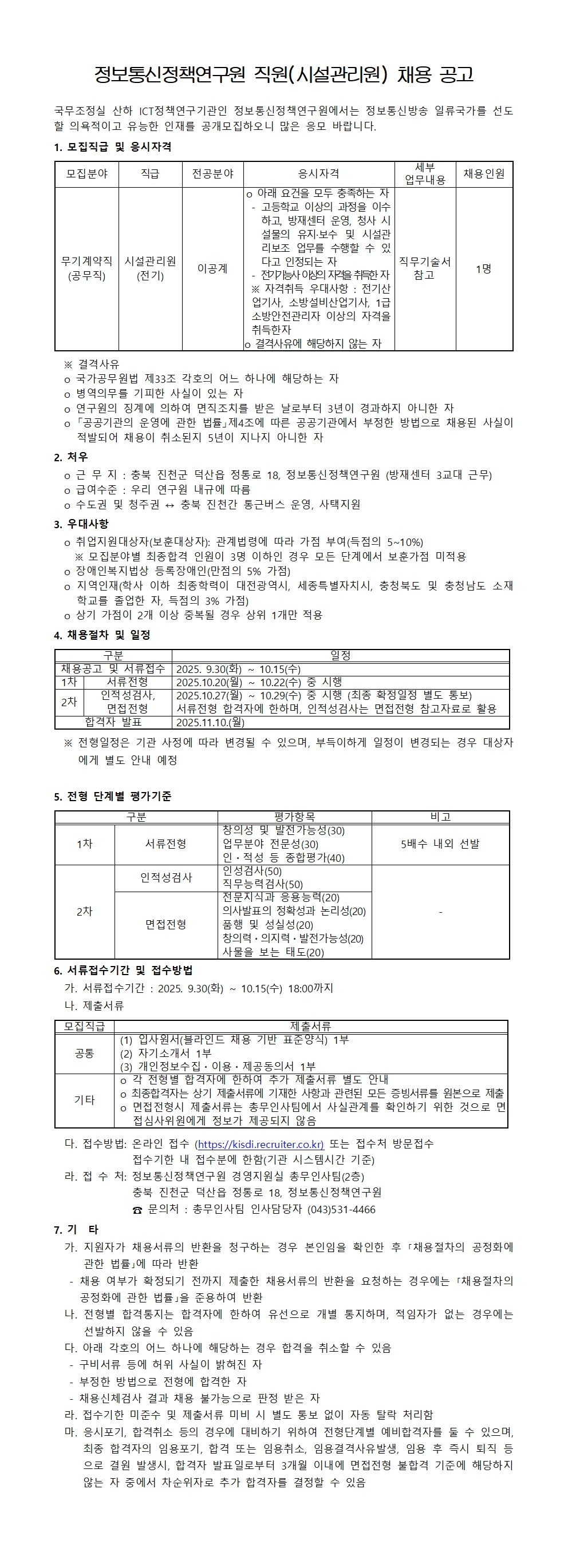 정보통신정책연구원 직원(시설관리원) 채용 공고