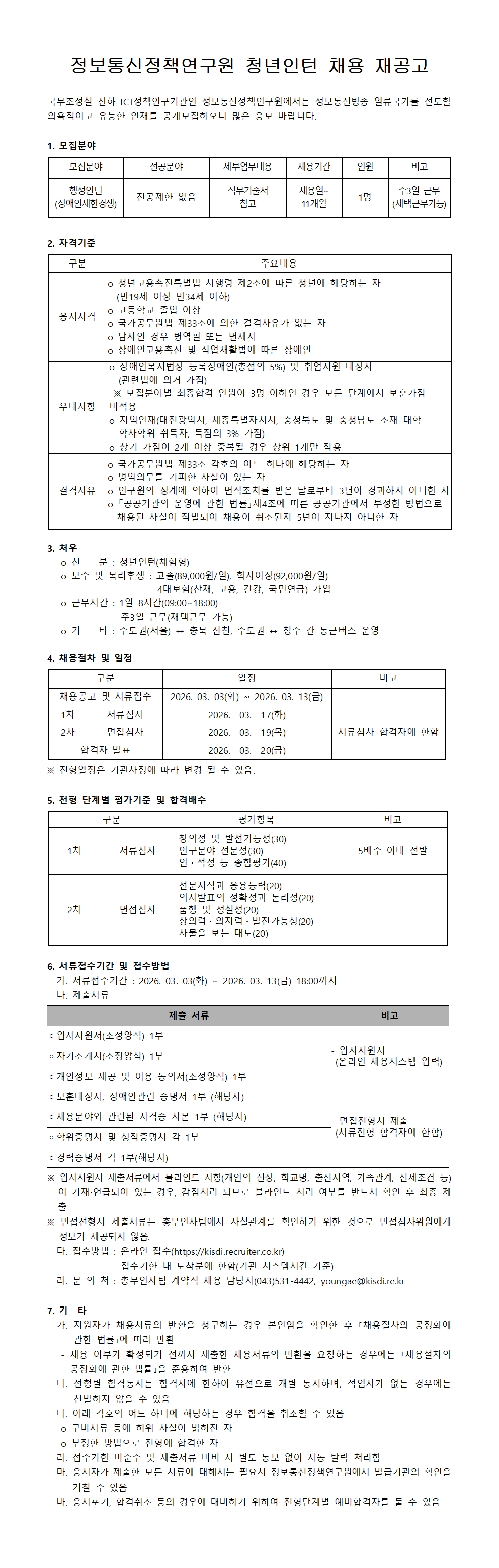 정보통신정책연구원 계약직 시설관리원 (휴직대체인력) 채용공고
